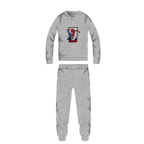 Pókember téli pizsama gyerekeknek 100% pamut alapanyagból. Kényelmes bőrbarát viselet. Gombos nyakkialakítással, gumírozott derékrésszel, egyenes, szűkített szárral, Pókember mintával. Méret: 122 Díszdobozban szállítjuk.