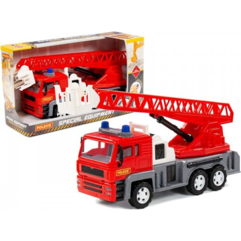 Polesie Tűzoltóautó - Kihúzható Létrával, 70 cm, Piros (88956 WADP)