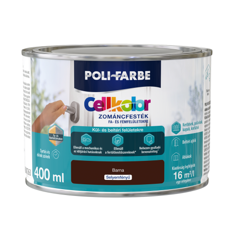 1 kép Poli-Farbe CELLKOLOR SELYEMFÉNYŰ ZOMÁNCFESTÉK 0,4L BARNA