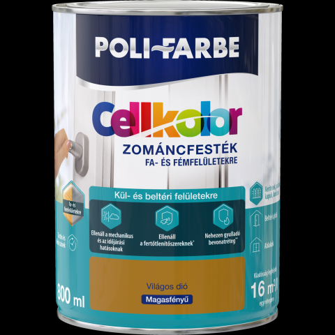 1 kép Poli-Farbe CELLKOLOR ZOMÁNCFESTÉK FÉNYES 0,8L VILÁGOS DIÓ