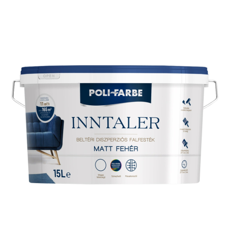 1 kép Poli-Farbe Inntaler Beltéri diszperziós falfesték - matt fehér 15l
