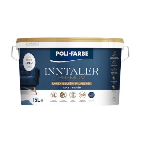 A Poli-Farbe Inntaler Premium Latex beltéri falfesték 15 literes kiszerelésben kiváló választás minden lakás számára. Ez a matt fehér festék extra alacsony VOC tartalommal rendelkezik, így környezetbarát megoldást nyújt. A festék kiváló fedőképessége biz