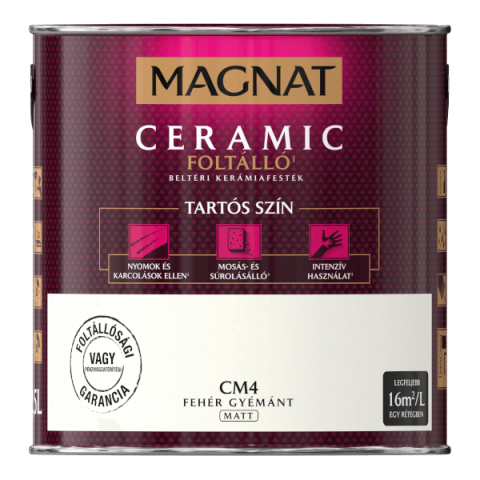 1 kép Poli-Farbe MAGNAT CERAMIC 2,5L BELTÉRI FALFESTÉK FEHÉR GYÉMÁNT CM4