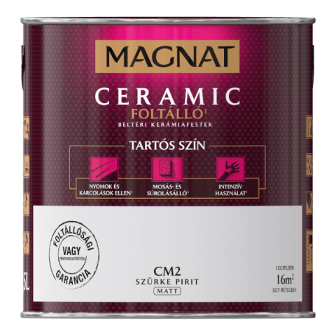 A MAGNAT KERÁMIAFESTÉK a cement, cement-mész, gipsz, gipsz-karton alapú falak és plafonok, valamint üvegszálas tapéták dekoratív-védő festéséhez alkalmazandó. Ugyanakkor alkalmazható fa, fa eredetű és fém beltéri felületek festéséhez.