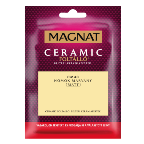 A MAGNAT KERÁMIAFESTÉK TESZTER eredeti festékszínminta, amelynek köszönhetően az adott szín, egy papírlapon vagy közvetlenül a falon, könnyen kiválasztható és ellenőrizhető. Az adott helyiség körülményei között alkalmazott festékfelfestés a színértékelés legmegfelelőbb formája. Ezenfelül, a pihentetett (28 nap utáni) festékfelfestés lehetőséget nyújt a helyiség körülményei közötti minőségellenőrzésre.