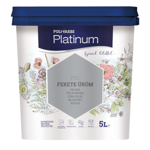 1 kép    Poli-Farbe PLATINUM SZÍNES FALFESTÉK 5L F50 FEKETE ÜRÖM BELTÉRI VIZESBÁZISÚ