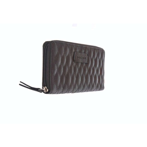 POLICE Emerson női bőr pénztárca elegáns barna színben, varrott mintával, kártya, igazolvány-és érme tartó zsebekkel és dombornyomott POLICE márkajelzéssel