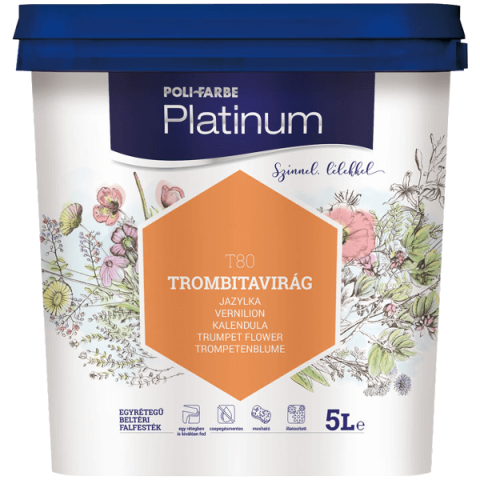 1 kép POLIFARBE PLATINUM PLATINUM BELTÉRI FALFESTÉK 5L TROMBITAVIRÁG T80 DISZPERZIÓS