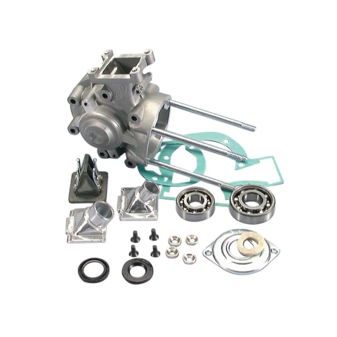A Polini teljes blokkháza a Peugeot 103, 105, 105 és GL10 robogókhoz készült. Ez a készlet tartalmazza a blokkház félét (jobb és bal oldali), a blokkház tömítést és a henger alap tömítést, 2x főtengely csapágyat, 2x tengelytömítést, 2x 15-19 mm-es karburá