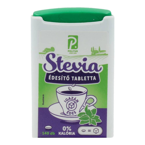 Politur stevia tartalmú édesítő tabletta 140 db Kapható 140 darabos önkiejtős dobozban, mely egy-egy zsebben vagy kézitáskában elfér.. Alacsony kalória tartalmú édesítőszer, cukorbetegek étrendjébe beilleszthető.