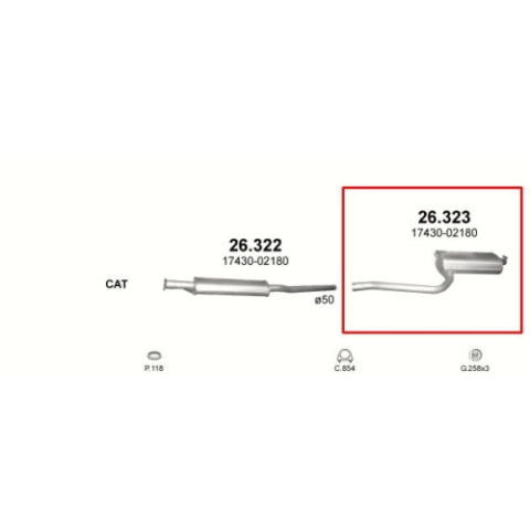POLMO Kipufogó, hátsó, Toyota Avensis, 1.6-2.0, 1997-2000.07