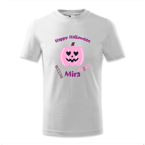 1 kép polofun.hu Happy Halloween, Mira, rózsaszín tökkel, Halloween