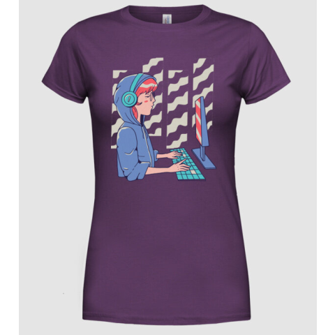 1 kép Pólómánia Anime Programozó Lány - Női Kerek nyakú Póló