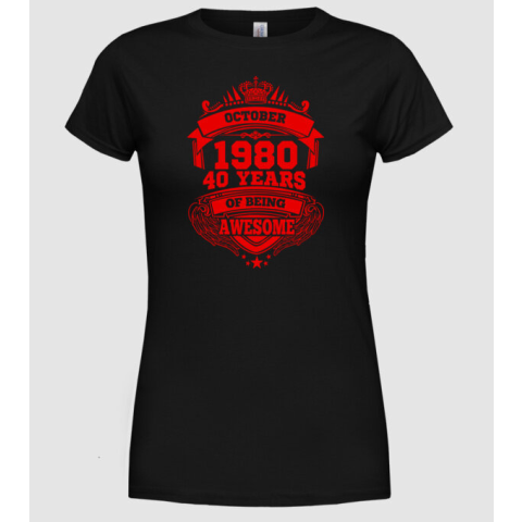 1 kép Pólómánia Awesome being of 40 years 1980 OKTÓBER - Női Kerek nyakú Póló