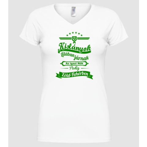 1 kép Pólómánia Az igazi nők zöld fehérben járnak - Női V nyakú Póló