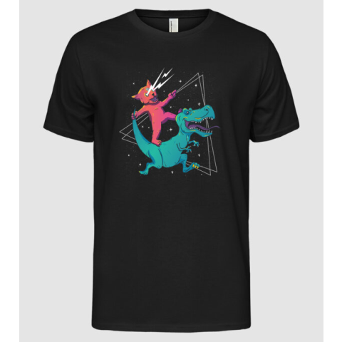 1 kép Pólómánia Betépett Macska Dinoszauruszon - Férfi Alap póló