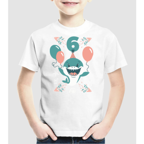 1 kép Pólómánia Birthday Shark 6 éves szülinapra cuki cápa - Uniszex Gyerek Póló