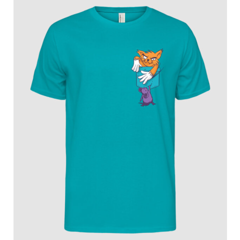 1 kép Pólómánia Cica Egérrel Zseb - Férfi Alap póló