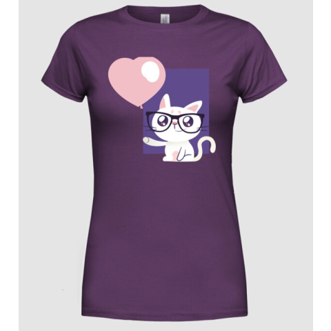 1 kép Pólómánia Cica Szív Lufival - Női Kerek nyakú Póló