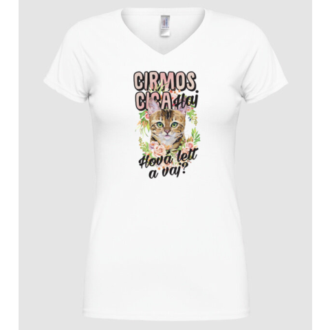 1 kép Pólómánia Cirmos cica - Női V-nyakú Póló
