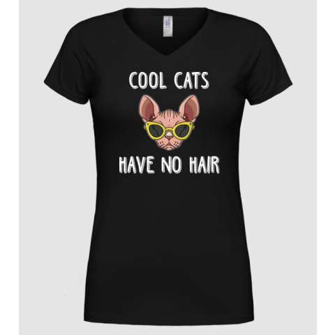 1 kép Pólómánia cool cats have no hair - Női V-nyakú Póló