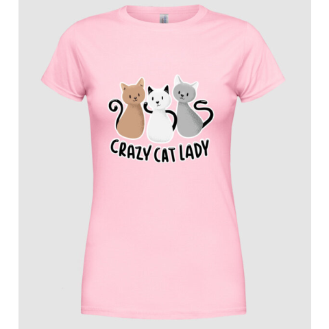 1 kép Pólómánia Crazy Cat Lady - Őrült Cicás Csaj - Női Kerek nyakú Póló