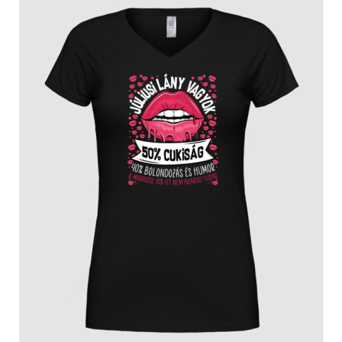 1 kép Pólómánia Cuki és bolondos szülinapos JÚLIUS - Női V-nyakú Póló
