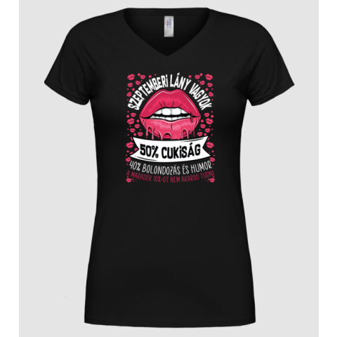 1 kép Pólómánia Cuki és bolondos szülinapos SZEPTEMBER - Női V-nyakú Póló