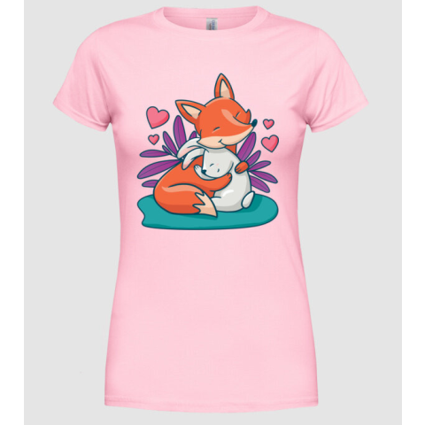 1 kép Pólómánia Cuki Róka Nyúllal Ölelés - Női Kerek nyakú Póló