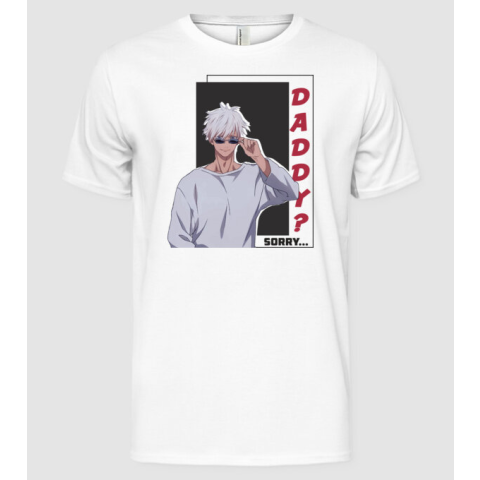 1 kép Pólómánia Daddy-sorry-Gojo-Jujutsu Kaisen-fehérre - Férfi Alap póló