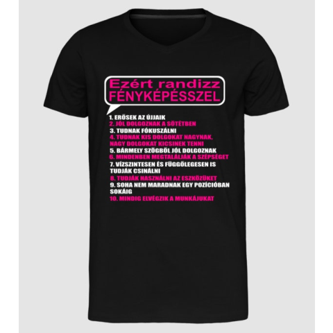 1 kép Pólómánia Ezért randizz fényképésszel - Férfi Prémium Slim-Fit V nyakú Póló