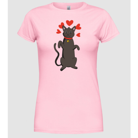 1 kép Pólómánia Fekete Cica Szerelem - Női Kerek nyakú Póló