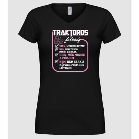 1 kép Pólómánia Feleség traktoros - Női V-nyakú Póló