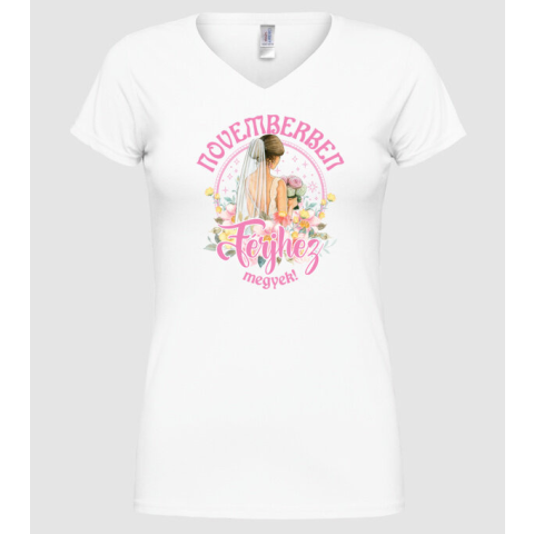1 kép Pólómánia Férjhez megyek floral pink NOVEMBER - Női V-nyakú Póló