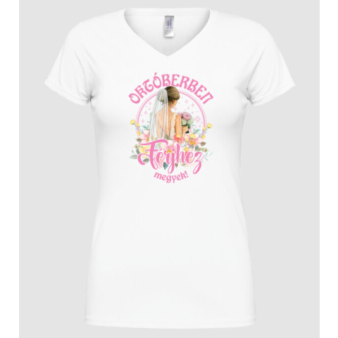 1 kép Pólómánia Férjhez megyek floral pink OKTÓBER - Női V-nyakú Póló
