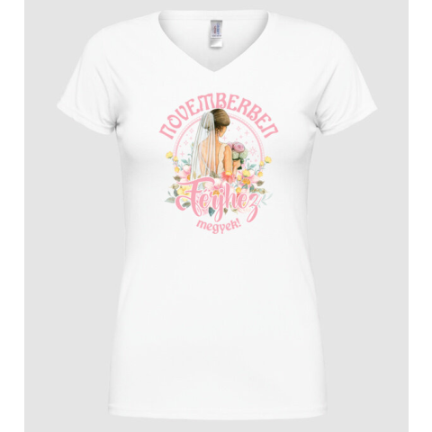 1 kép Pólómánia Férjhez megyek floral világos pink NOVEMBER - Női V-nyakú Póló