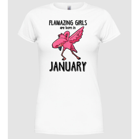1 kép Pólómánia Flamazing girls are born in january black - Női Kerek nyakú Póló