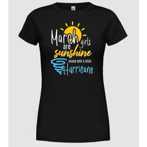 1 kép Pólómánia Girls are sunshine születésnapos MÁRCIUS - Női Kereknyakú Póló