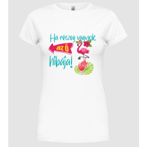 1 kép Pólómánia HA RÉSZEG VAGYOK az ő hibája flamingo páros - Női Kerek nyakú Póló