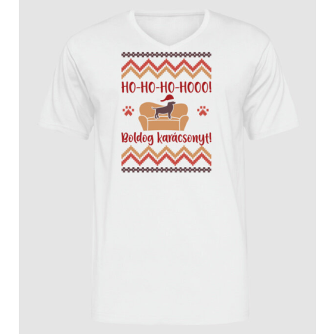 Pólómánia Ho-Ho-Ho kutya - Férfi - Unisex V-nyakú póló férfi póló 1 kép