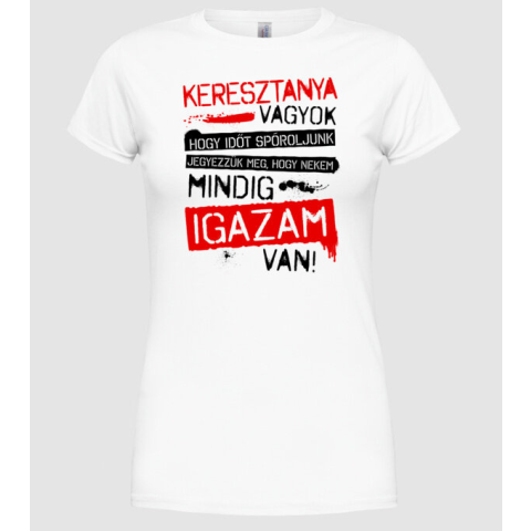 1 kép Pólómánia Keresztanya vagyok mindig igazam van - Női Kerek nyakú Póló