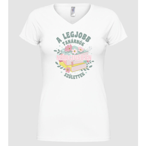 1 kép Pólómánia Legjobb tanár szülinap_MÁRCIUS - Női V-nyakú Póló