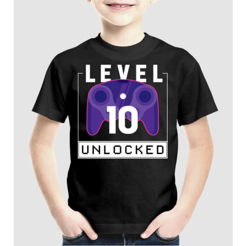1 kép Pólómánia Level 10 Unlocked Gamer Születésnap - Uniszex Gyerek Póló