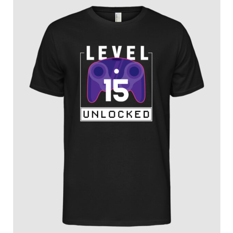 1 kép Pólómánia Level 15 Unlocked Gamer Születésnap - Férfi Alap póló