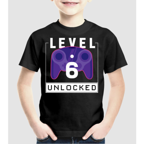 1 kép Pólómánia Level 6 Unlocked Gamer Születésnap - Uniszex Gyerek Póló