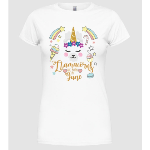 1 kép Pólómánia Llamacorns are born in JÚNIUS - Női Kereknyakú Póló