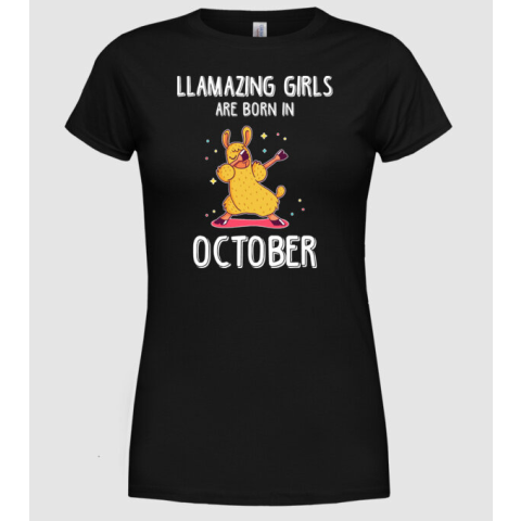 1 kép Pólómánia Llamazing girls are born in october - Női Kerek nyakú Póló