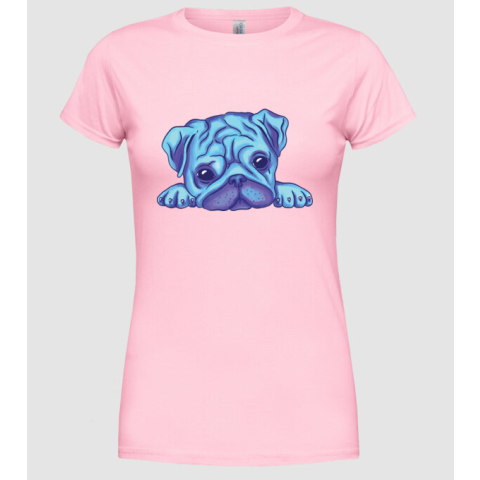 1 kép Pólómánia Mopsz Fej Vízfesték - Női Kerek nyakú Póló
