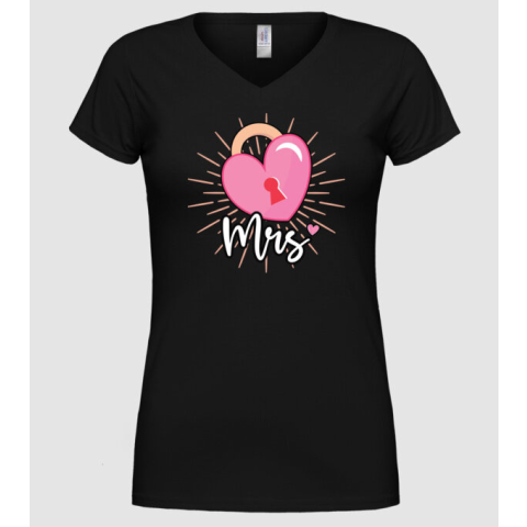 1 kép Pólómánia Mrs szívlakat kulccsal - Női V-nyakú Póló