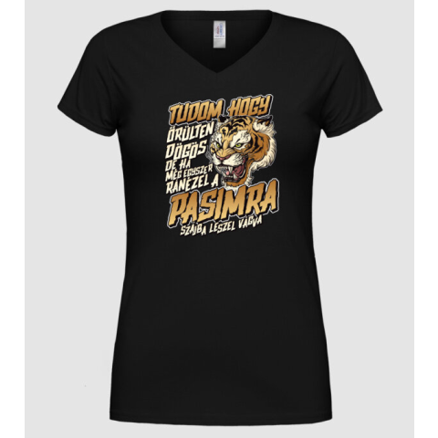 1 kép Pólómánia Őrülten dögös a pasim - Női V-nyakú Póló
